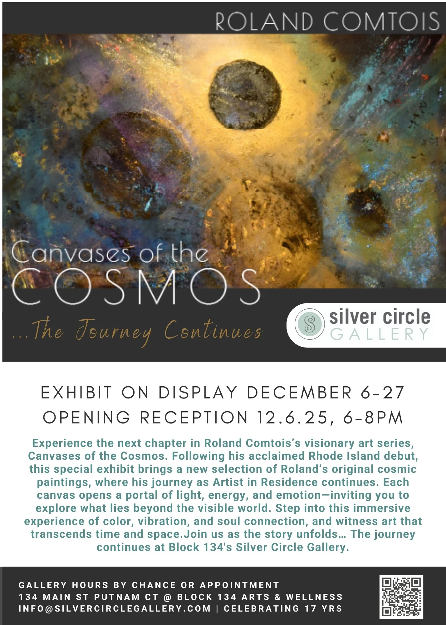 Following his acclaimed Rhode Island debut, Roland brings a newly curated selection of his original cosmic paintings to Putnam—each one a radiant portal of light, energy, and intuitive expression. His canvases invite you to step beyond the visible world and experience art as vibration, emotion, and transmission.